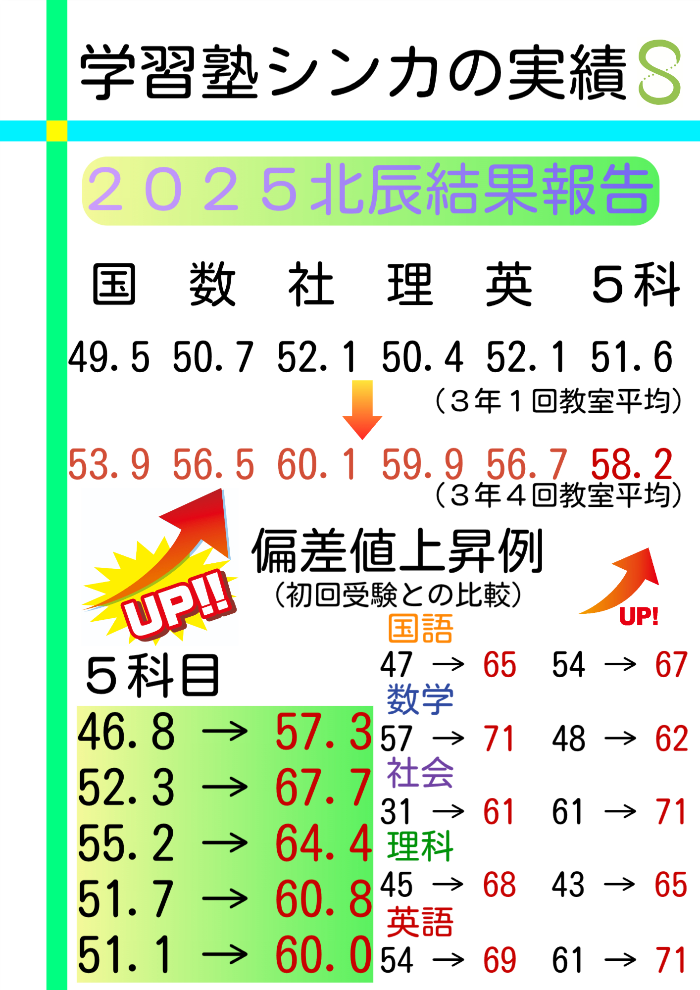 なんと5科目平均で6.6UPしました。